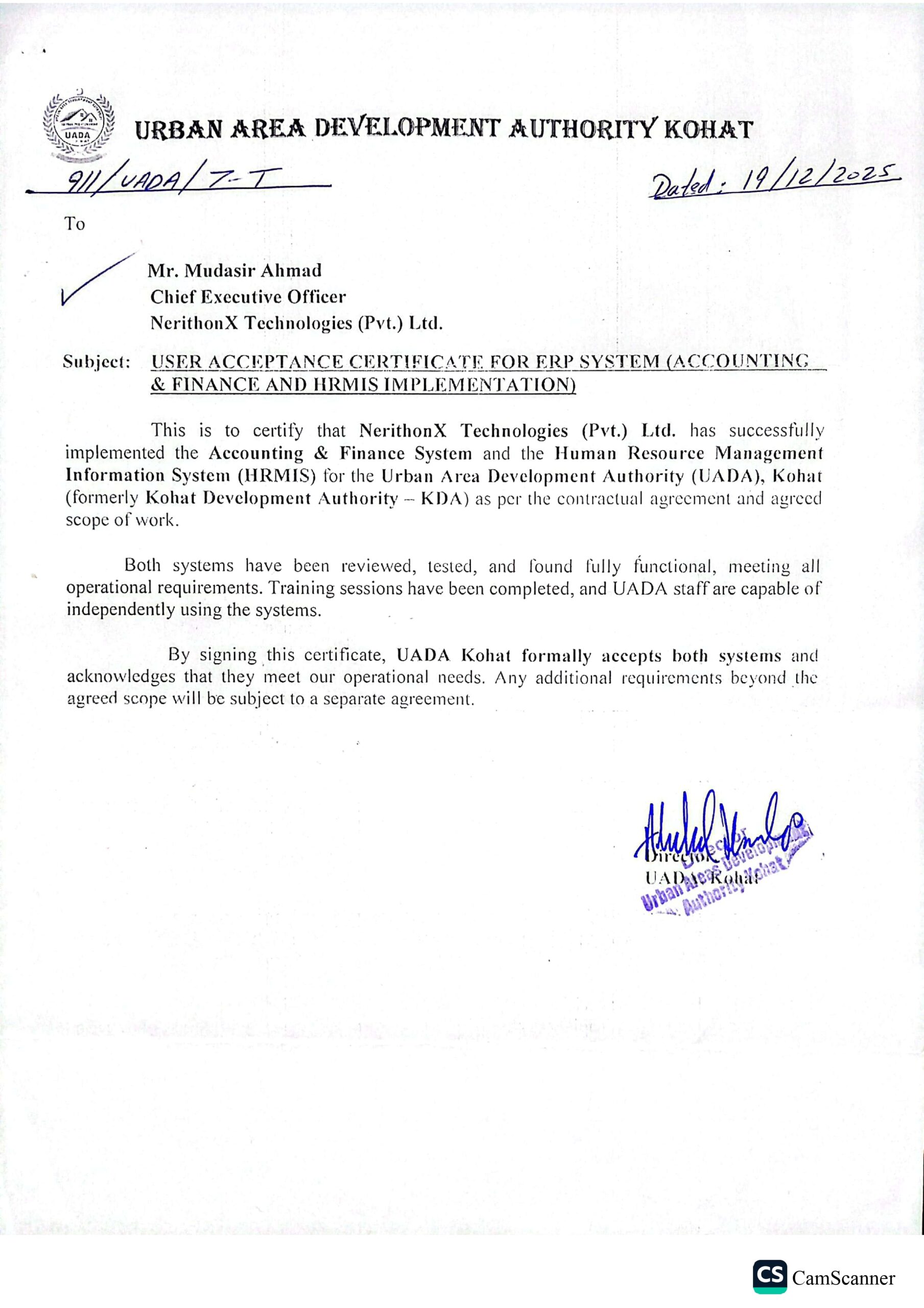 - Certified Success: Official Letter of Completion and User Acceptance Certificate on file, verifying the system is live and running smoothly.